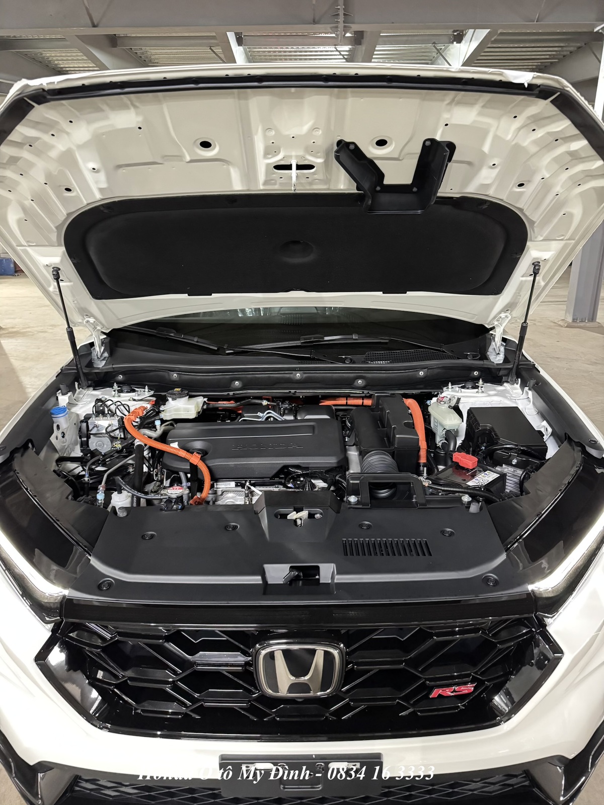 Honda CR-V e:HEV RS 2025 và 2026 là bước đột phá về vận hành. Sử dụng hệ thống hybrid tiên tiến vận hành nối tiếp và song song, xe kết hợp động cơ xăng 2.0L và hai mô-tơ điện, cung cấp công suất mạnh mẽ 204 mã lực và mô-men xoắn 335 Nm. Hộp số e-CVT mượt mà và tiết kiệm nhiên liệu, với mức tiêu thụ chỉ 5,2 lít/100 km.